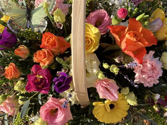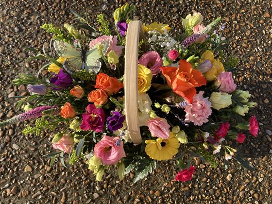 Guaranteed to brighten someone’s day this basket is filled with beautiful bright blooms including freesia for a gorgeous scent