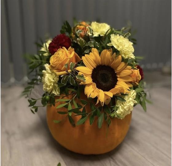 Pumpkin flower arrangement workshops - bring your own carved pumpkin and we will supply everything you need to create your own beautiful Pumpkin flower arrangement £40 per person.